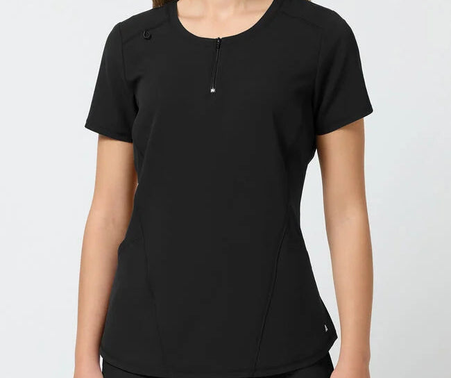 Women Zip Front Scoop Neck Scrub Top